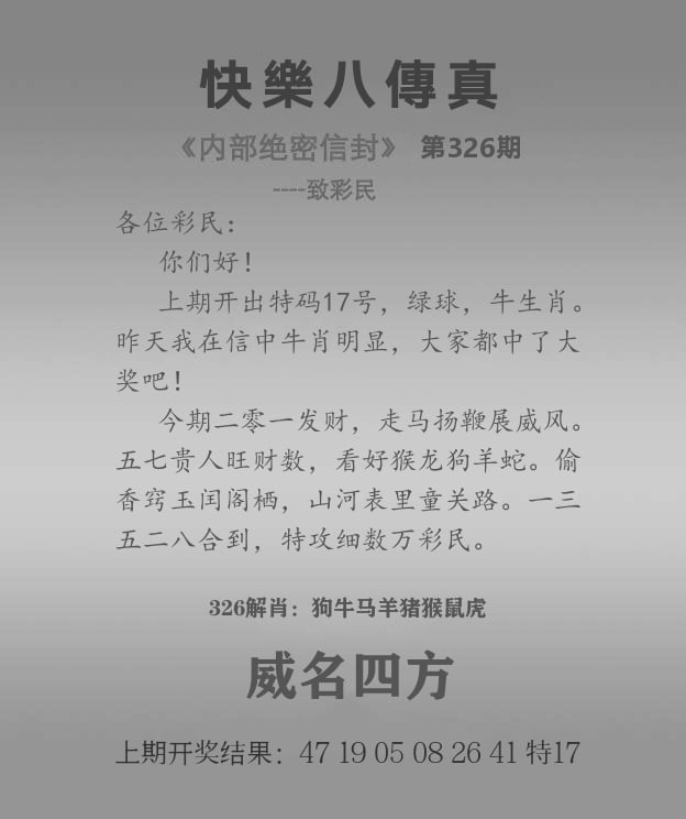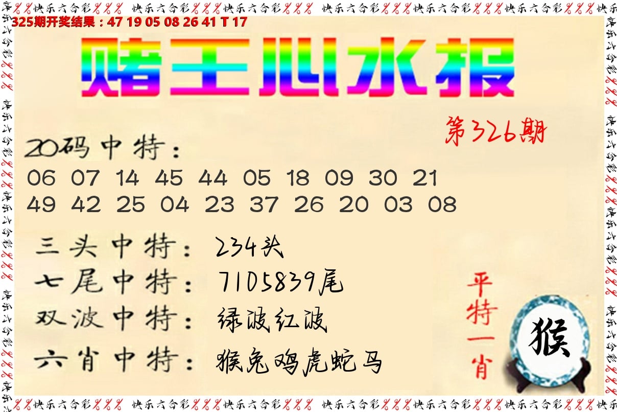 326期澳门49〖九肖十码〗Z49.COM 九肖:羊虎兔龙牛马猴蛇狗 ⑩码:11 47 04 40 27 39 14 38 05 17 六肖:羊虎兔龙牛马 ⑧码:11 47 04 40 27 39 14 38 四肖:羊虎兔龙 ④码:11 47 04 40 澳门六合活动进行中站长担保 点击投注